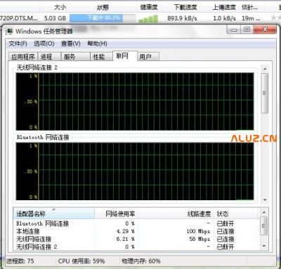 前几天需要快速下载一部电影,所以就将联想笔记本上的Lan口接到电信上,笔记本的无线网卡连接到广电线路上,希望能做到线路叠加。效果很不错。